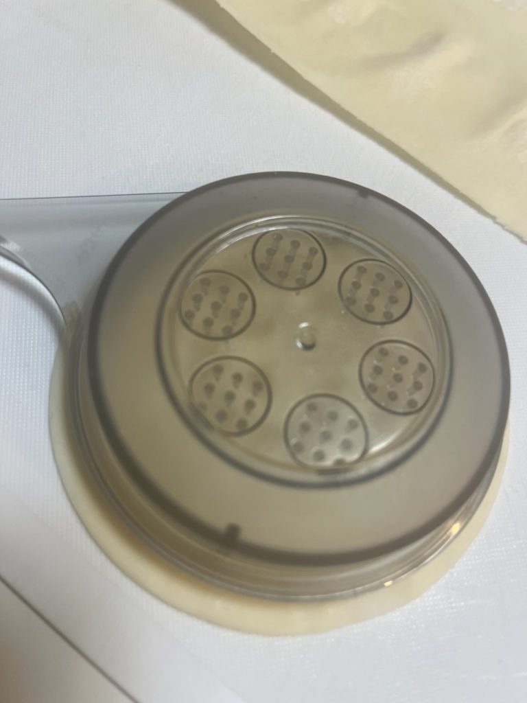 付属のアタッチメントキャップで型抜きすると普通サイズ、大判が良ければクッキー型セルクルなどで抜きします
