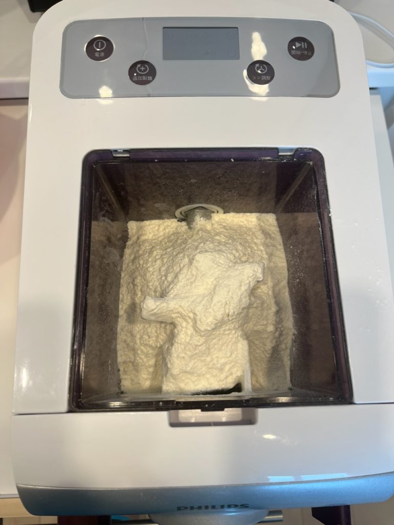 切れ端は再度ヌードルメーカーへ入れて「追加製麺」ボタンを押します