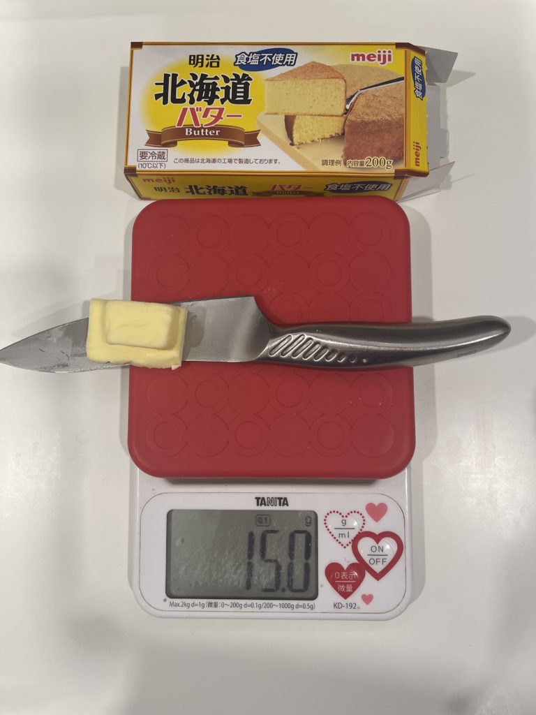 バターを計るときはこうして計ると洗い物が少なくすみます