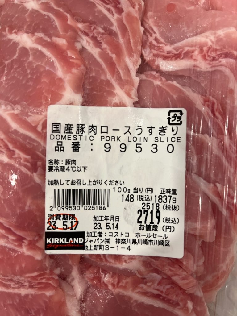 コストコで購入した「国産豚肉ロースうすぎり」について記載しました。